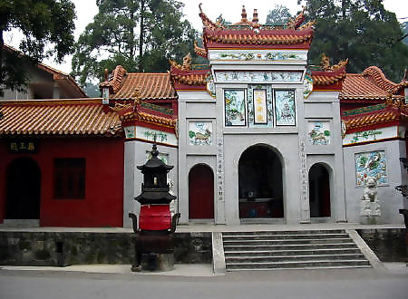 在岳麓山半腰,系晉初古寺,是佛教人湘最早的一所大寺。明神宗時 更名為萬壽寺,民國初年復名,古麓山專。唐代大詩人杜甫曾用“寺門高開 洞庭野,殿腳插入赤沙湖”的詩句稱頌殿字宏大。大雄寶殿等主要建筑,于 1944年被炸毀,僅存山門和觀音閣,現(xiàn)已修整一新.山門上有“古麓出寺” 的橫額,兩旁為“漢魏最初名勝,湖湘第一道場"對聯(lián),門外古楓參天,濃 蔭覆蓋,門內(nèi)園圃百花爭艷。觀音閣為磚木結(jié)構(gòu),1955年曾加以修葺,1980 年再次修整恢復原貌,并在廳堂神龕中置觀音像。閻內(nèi)常舉辦小型書畫展 覽。觀音閣前有兩株羅漢松,左邊一株是六朝遺跡,稱“六朝松",樹 齡在1700年以上, 是岳麓山植物界的"元老", 老干新枝,紛繁翁 郁,彌足珍貴;右邊一株于清代被巨風拔去并被清代人補植。兩棵古松 并峙于閣前,游人樹下經(jīng)過,若入關(guān)隘,故有“關(guān)松"之稱。