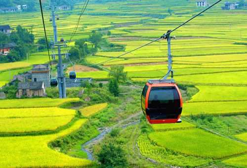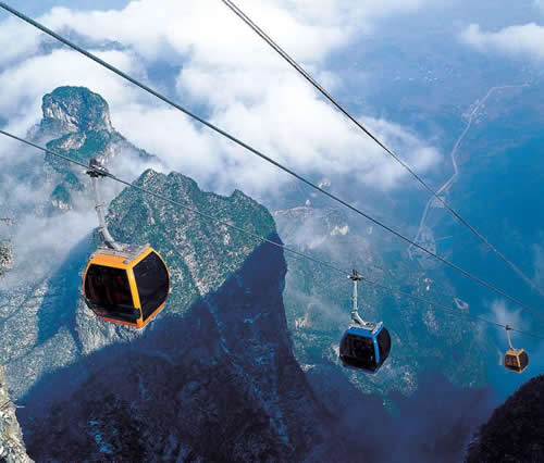 天門山索道是世界最長的高山客運(yùn)索道,位于張家界天門山。共有轎廂98個(gè),索道支架57 個(gè)(含3個(gè)救護(hù)支架),全部采用法國POMA公司原裝進(jìn)口設(shè)備。索道全長7454米,高差1277米,是國內(nèi)為數(shù)不多高差超過千米的索道之一,其中站到上站之間的局部斜度更高達(dá)37度,世界罕見,是國內(nèi)局部斜度最大的索道,同時(shí)也是支架最多的索道。