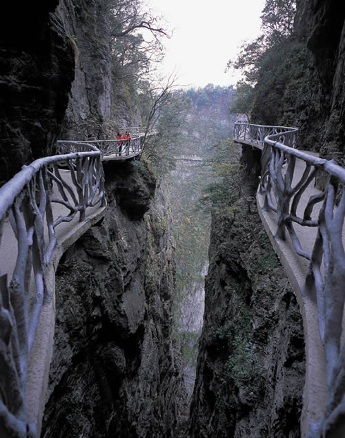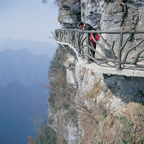 據(jù)施工人員介紹,此條棧道也是他們所修棧道中施工最難,最險(xiǎn)峻的一條。如果您還覺(jué)得不夠刺激的話(huà),在棧道的完結(jié)處的兩個(gè)懸崖之間有一條長(zhǎng)160米的懸索吊橋,同時(shí),在海拔最高點(diǎn)還有一個(gè)挑戰(zhàn)心里極限的玻璃站臺(tái),在這里,如果你能挺直腰板伸開(kāi)雙臂,那么,您就是真正的勇士了。