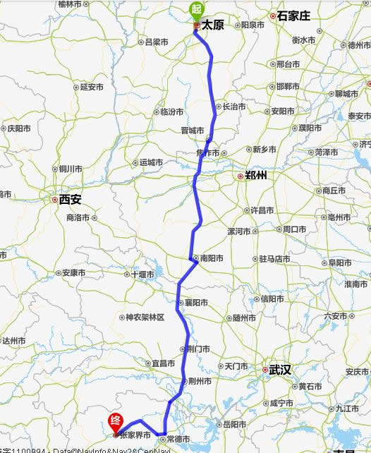 太原去張家界自駕車自助游線路圖全程高速):