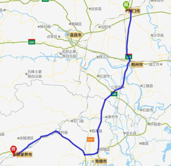 荊門去張家界自駕車自助游線路圖全程高速):