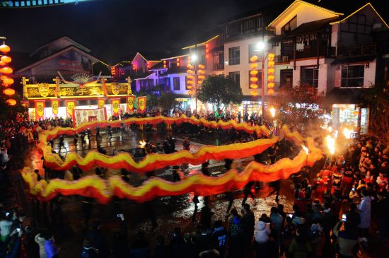 世界最長(zhǎng)香火龍“閃亮”張家界溪布老街