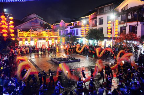 火龍出場(chǎng),街區(qū)狂舞;盤龍點(diǎn)睛,眾人祈福。12月21日,農(nóng)歷冬至,當(dāng)天夜晚在旅游勝地張家界武陵源區(qū)溪布老街?jǐn)[手堂廣場(chǎng)啟動(dòng)的 “武陵腔調(diào):趕火趕戲趕大年”活動(dòng)儀式上,一條全身似火的長(zhǎng)龍?jiān)诮倜良覂号奈鑴?dòng)下 “閃亮”登場(chǎng),格外耀眼。據(jù)了解,這條長(zhǎng)龍身有香味,全長(zhǎng)108米,是目前世界最長(zhǎng)的香火龍。