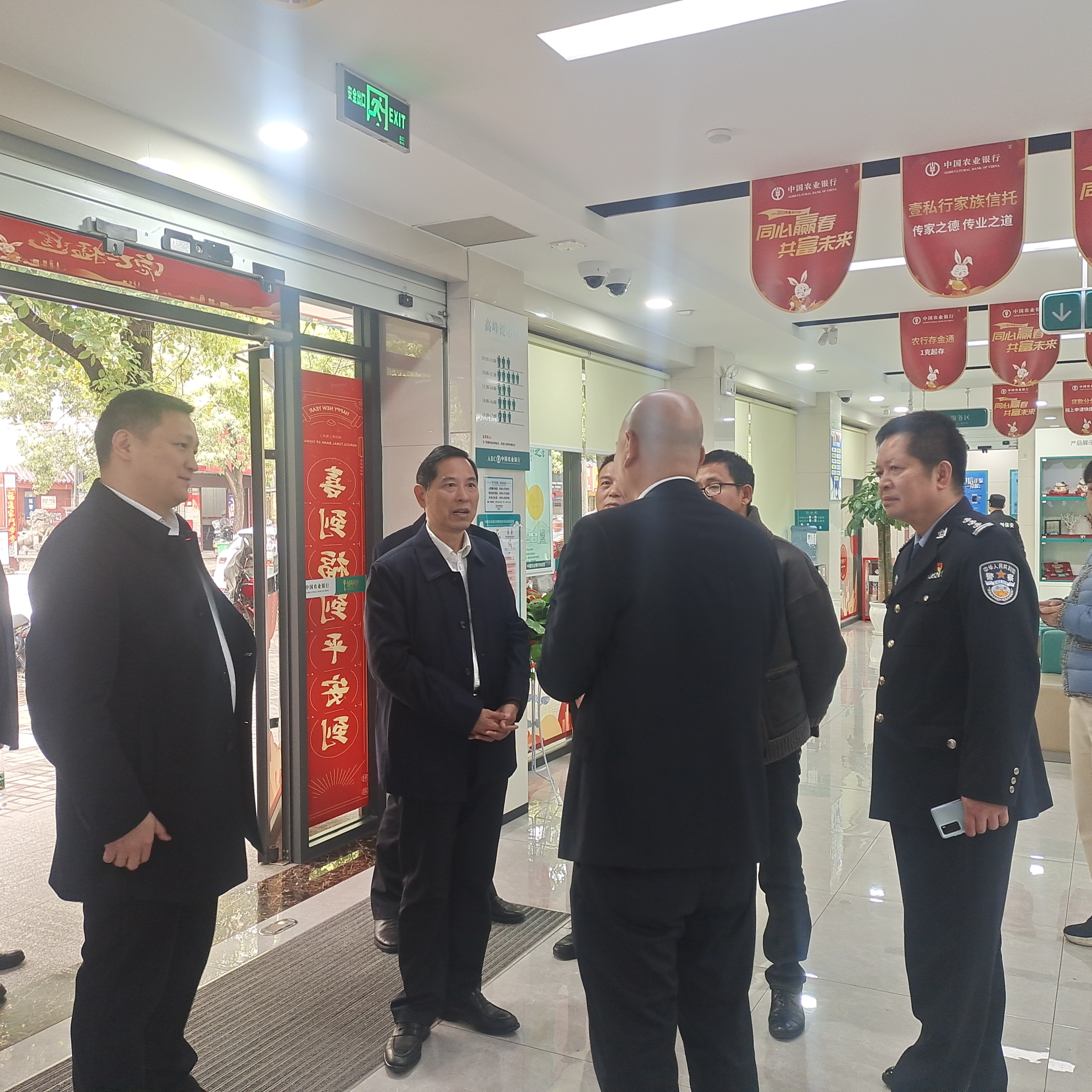 為進一步規(guī)范保安服務(wù)行業(yè)標(biāo)準(zhǔn),促進保安服務(wù)行業(yè)健康有序發(fā)展2023年3月28日下午省公安廳原黨委委員、副廳長、一級巡視員、省保安協(xié)會會長譚和平、市公安局黨委副書記、常務(wù)副局長陳操、市公安局黨委委員、副局長張危安等相關(guān)單位部門領(lǐng)導(dǎo)一行蒞臨中國農(nóng)業(yè)銀行錦園支行及懷化市第四人民醫(yī)院兩個網(wǎng)點檢查指導(dǎo)工作,對保安員的著裝、履職情況、外來人員登記制度執(zhí)行情況、安防器械配備、安全管理制度落實等工作進行全面檢查。