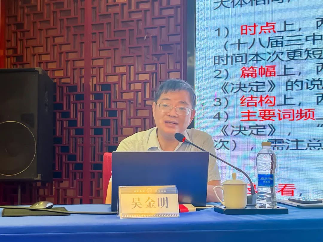 九三學(xué)社中央委員、湖南省委會副主委吳金明教授從我國經(jīng)濟復(fù)蘇面臨的壓力與困難入手,全面剖析了黨的二十屆三中全會精神內(nèi)涵、變化以及未來改革方向,闡述了全會《決定》提出的27個新概念,指出了民營經(jīng)濟發(fā)展面臨的新機遇。同時結(jié)合湖南保安行業(yè)實際,特別是國際重大會議安保任務(wù)越來越重的趨勢,為保安企業(yè)如何把準推動高質(zhì)量發(fā)展的著力點、加快培育新質(zhì)生產(chǎn)力等指明了轉(zhuǎn)型升級方向。