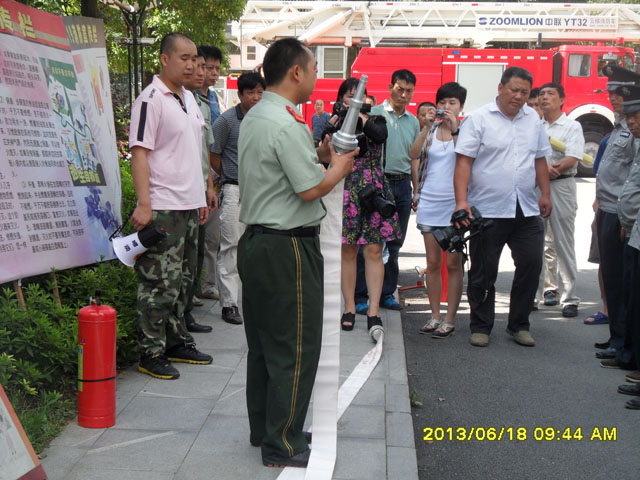 首先進(jìn)行的是由市消防支隊(duì)老班長(zhǎng)主講的消防安全常識(shí),通過(guò)實(shí)例及消防戰(zhàn)士們救火的親身經(jīng)歷,告訴我們?cè)鯓幼钣行У姆阑鸺霸诩彝ブ鸬那闆r下怎樣最大程度的減少損失和保全生命,詳細(xì)介紹并現(xiàn)場(chǎng)演練了各種消防器材的使用及注意事項(xiàng)。進(jìn)行的第二個(gè)內(nèi)容是在緊急情況下怎樣最有效的逃生方法,通過(guò)救生氣墊或能夠代替救生氣墊的棉被等物件最大程度的提高著火點(diǎn)人員跳樓的損傷,金劍保安公司保安人員及物業(yè)公司員工都積極主動(dòng)的參予其中。第三個(gè)內(nèi)容也是最驚險(xiǎn)的內(nèi)容,由消防戰(zhàn)士表演了失火情況下利用床單或窗簾等物件織成繩,從窗口滑下的逃生方法。