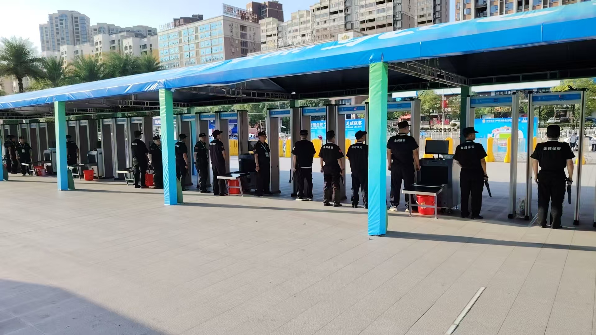 懷化金劍保安公司、懷化亮劍保安服務(wù)有限公司在這次賽事中,具體負(fù)責(zé)體育中心外圍進(jìn)場(chǎng)的安檢工作。此次主場(chǎng)比賽有1.5萬(wàn)多名觀眾進(jìn)場(chǎng),安檢任務(wù)壓力極大。為做好進(jìn)場(chǎng)安檢工作,金劍保安服務(wù)有限公司董事長(zhǎng)向其華率先垂范,在比賽前幾天一直撲在安?,F(xiàn)場(chǎng),參與對(duì)安檢儀器擺放和測(cè)試,確保安檢門檢測(cè)儀靈敏有效。同時(shí)組織隊(duì)員數(shù)十次進(jìn)行模擬演練,熟練掌握、操控安檢儀器。