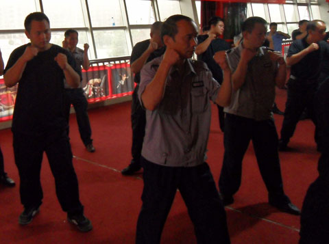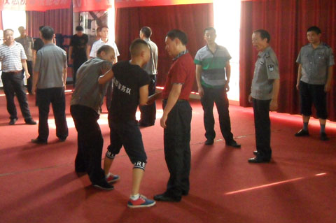 為保證此次培訓(xùn)的順利進行,農(nóng)業(yè)銀行懷化分行各級領(lǐng)導(dǎo)高度重視、懷化金劍保安公司積極配合,做出了詳盡的培訓(xùn)計劃及保安人員代班計劃,做到培訓(xùn)、安全兩不誤。整個培訓(xùn)分三個批次進行,每個批次進行五天的培訓(xùn)。各縣、市、區(qū)支行安保人員及大堂保安人員分三批輪流培訓(xùn),鶴城區(qū)大堂保安白天繼續(xù)上班,利用每天晚上的兩個小時時間進行培訓(xùn)。培訓(xùn)內(nèi)容包括銀行系統(tǒng)的安全任務(wù)與責(zé)任、反恐防暴所需的各種專業(yè)技能,如擒拿格斗、軍體動作、禮節(jié)禮貌、專業(yè)器材的使用等等。培訓(xùn)將于2014年9月25日結(jié)束。