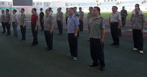2014年9月10日晚上19:30分,中國農(nóng)業(yè)銀行懷化分行各支行、營業(yè)部、網(wǎng)點安全保衛(wèi)人員、大堂保安人員反恐防暴技能培訓(xùn)在懷化市體育中心隆重舉行了開幕儀式,標(biāo)志著2014年農(nóng)業(yè)銀行為期半月的反恐防暴培訓(xùn)、演練正式拉開序幕。參加開幕儀式的有懷化市公安局治安支隊張支隊長、內(nèi)保大隊謝洪民大隊長、農(nóng)業(yè)銀行懷化分行副行長、農(nóng)業(yè)銀行懷化分行紀(jì)檢書記、懷化金劍保安公司主管銀行保安經(jīng)理陳紅偉、副經(jīng)理李振雄、以及市分行、各支行、營業(yè)部、網(wǎng)點安全保衛(wèi)人員及保安人員。